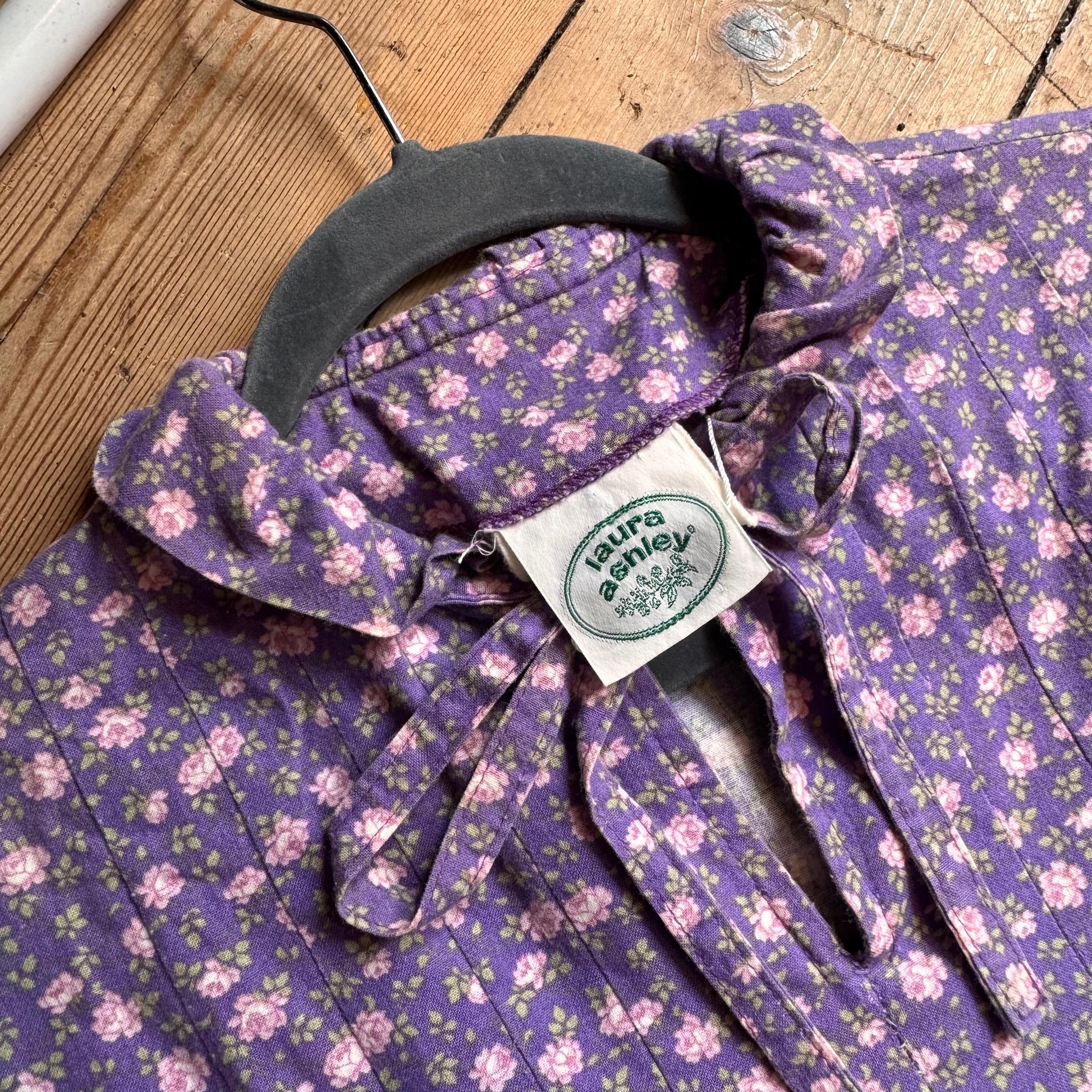 The perfect ditsy floral. 1970’s Laura Ashley floral cotton dress, made in wales. Complete with collar, tie neckline and pleated front. Rare made in wales label.