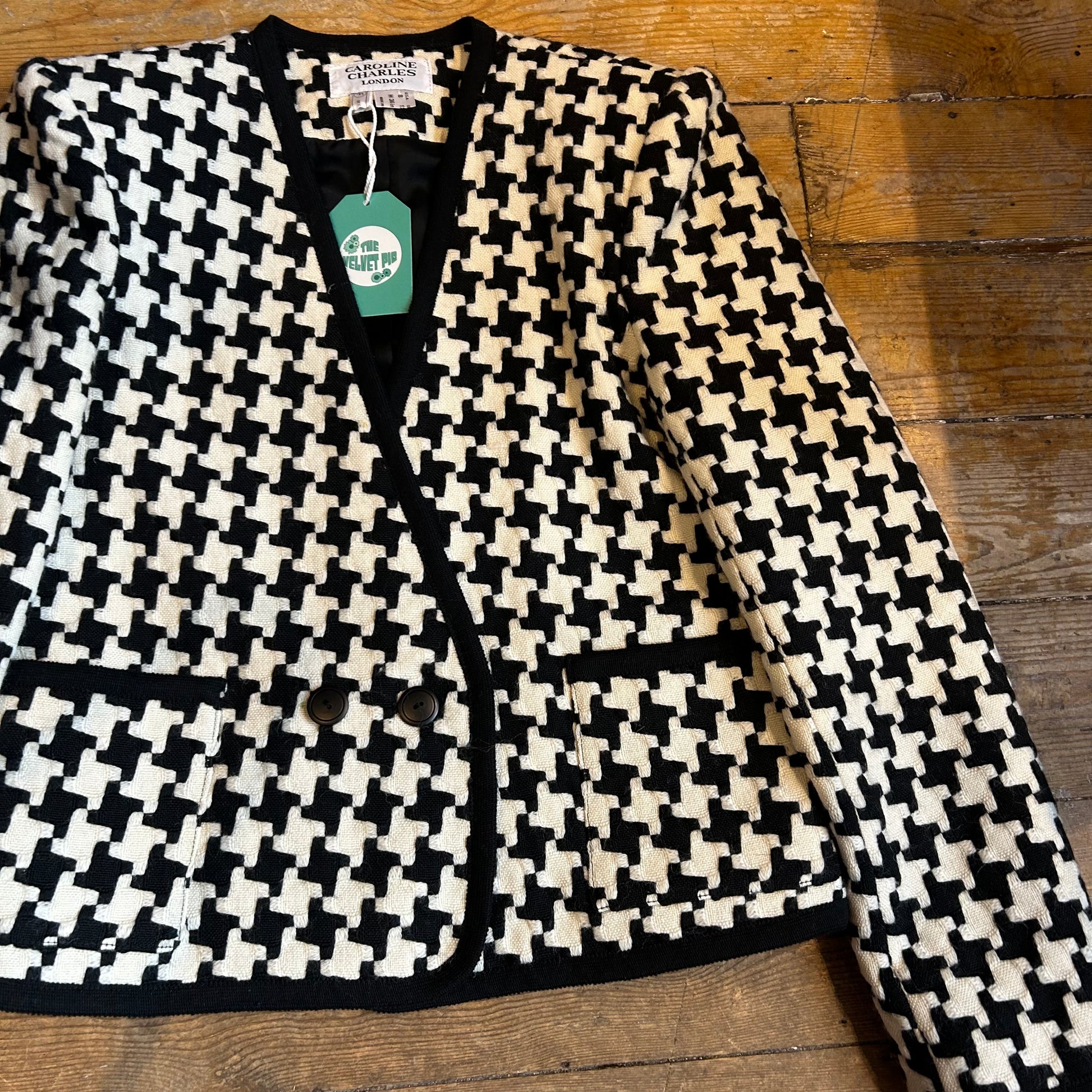 1980’s Caroline Charles Houndstooth Wool Blazer UK 10-12
