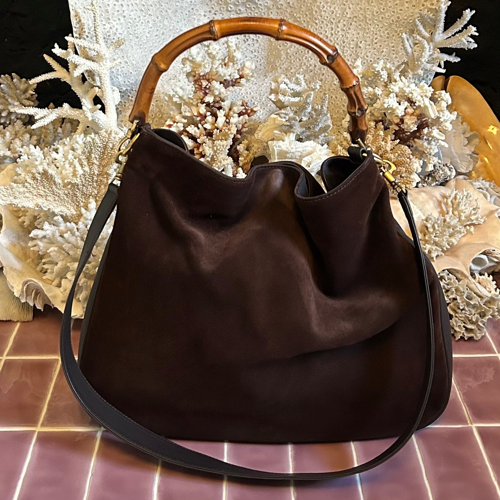 Vintage Gucci Bamboo Chocolate Suede Hobo Bag